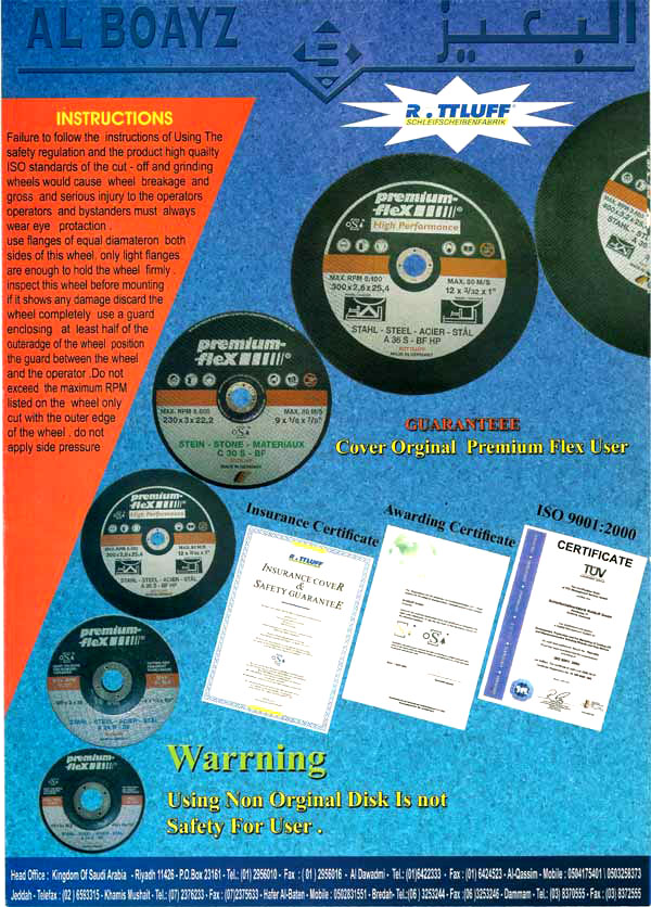 Al-BOAYZ Trading Company is consistantly recognized for our outstanding achievement in all aspects of building materials. Al-BOAYZ Trading Company offers a complete line of building materials and construction tools From our legendary abrasive wheels to our lines of trimmers, blowers, saws and more, each and every piece of equipment is built with unwavering standards that have made Al-BOAYZ Trading Company the premium name in indoor and outdoor power building equipments and materials. We strive to construct and manage our projects with the highest expectations of success including: quality, safety, innovation, sustainability, etc.