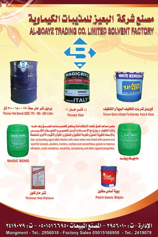 12/04/11: Al-Boayz Trading Company ltd. announces the launch of its new website. This is one of many steps in ensuring Al-BOAYZ Company is on the forefront of the competition.www.alboayz.com