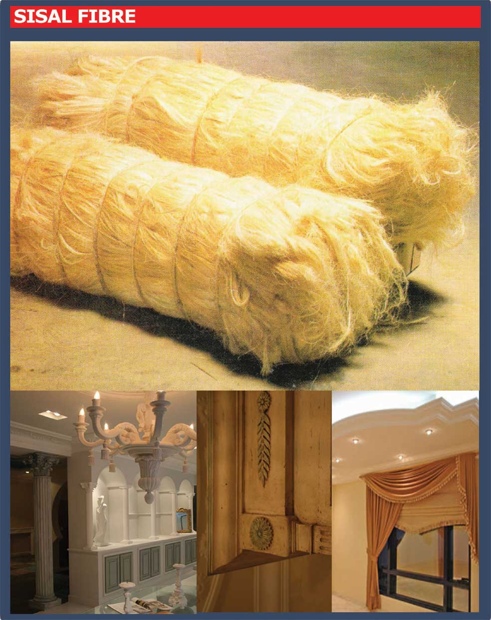 Traditionally used for rope and twine, sisal has many uses, including paper, cloth, wall coverings and carpets.
