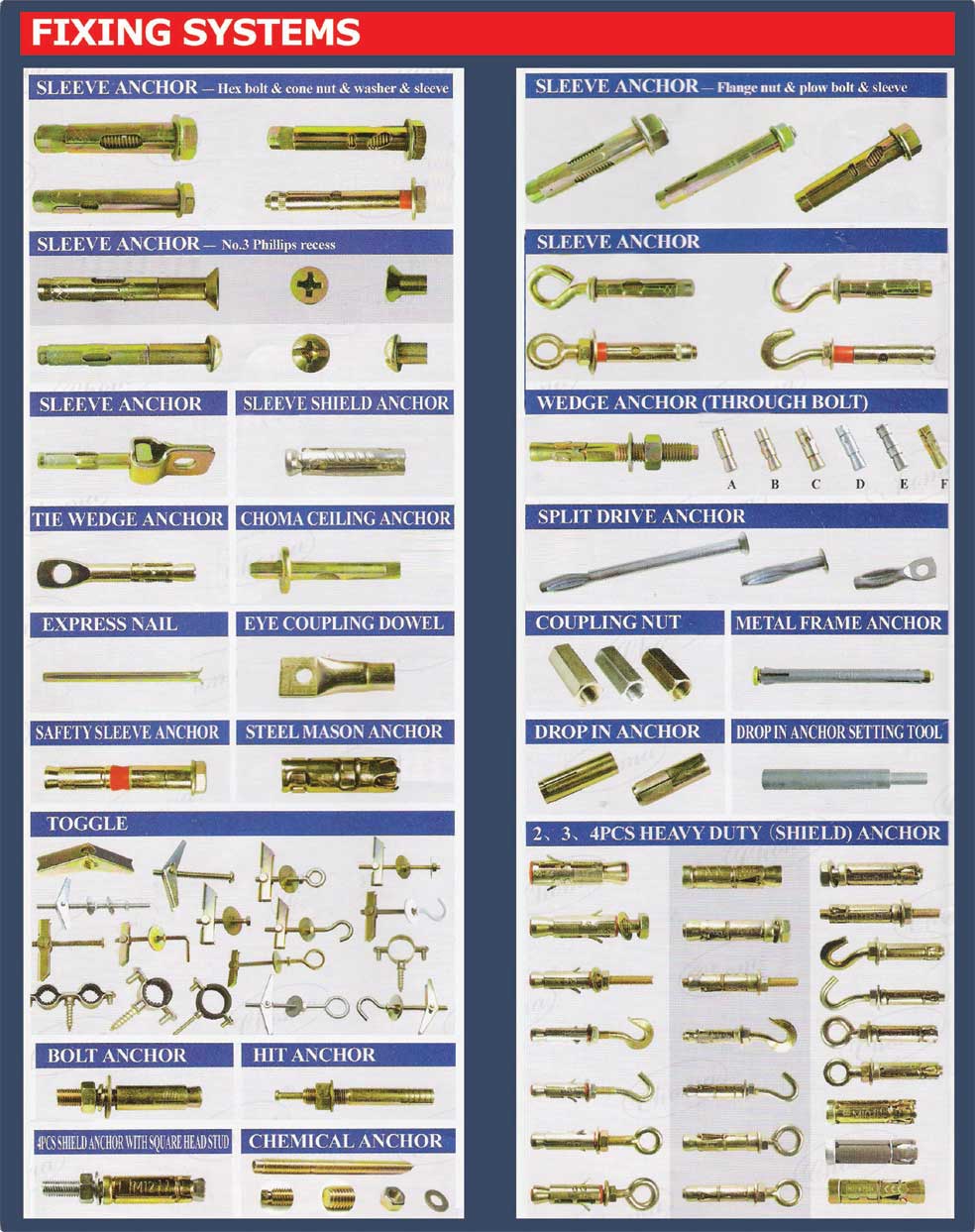 Concrete Sleeve Anchors' design allows them to anchor into concrete, brick and block. Sleeve anchors work by inserting them into a hole drilled into concrete. Turning the nut pulls the working end of the sleeve anchor up through the sleeve, expanding and anchoring itself securely in the concrete, brick or block.